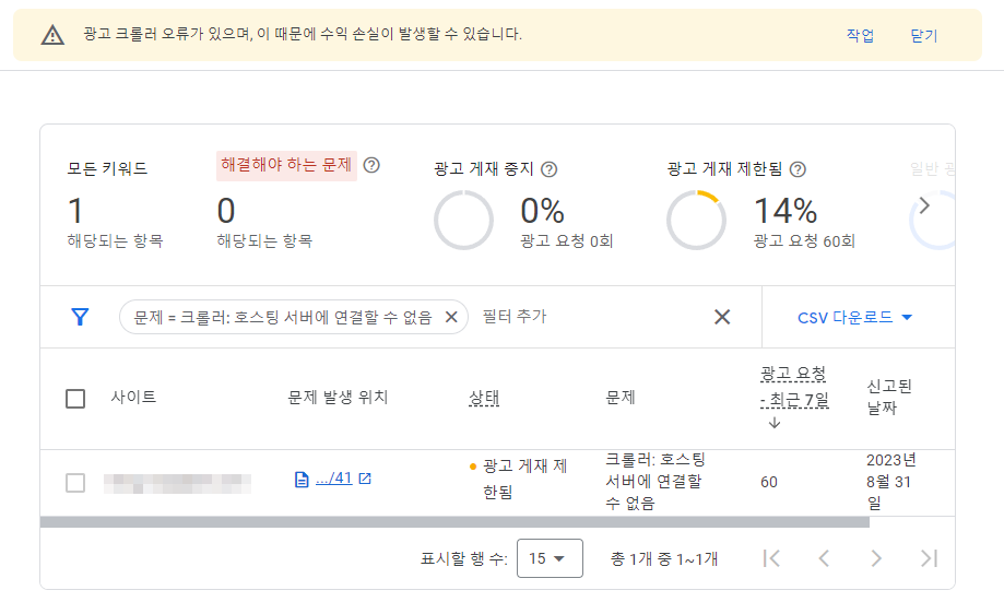 간혹, △ 광고 크롤러 오류가 있으며, 이 때문에 수익 손실이 발생할 수 있습니다.라는 경고 문구를 확인하는 경우가 있습니다.