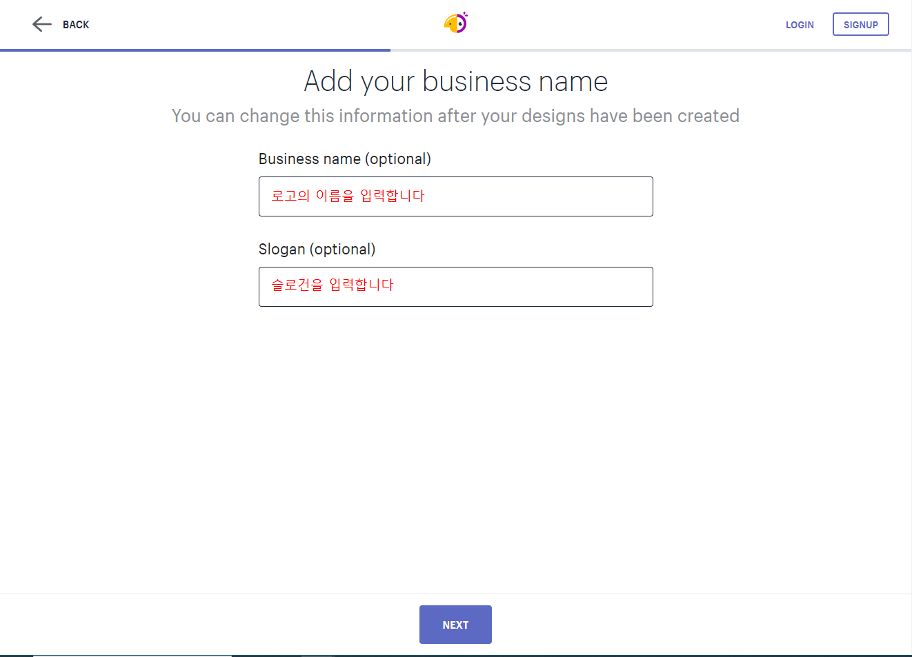이제 상세 세부설정을 마치고, 맨 아래의 NEXT 버튼을 클릭하면 로고 제작이 완성됩니다.