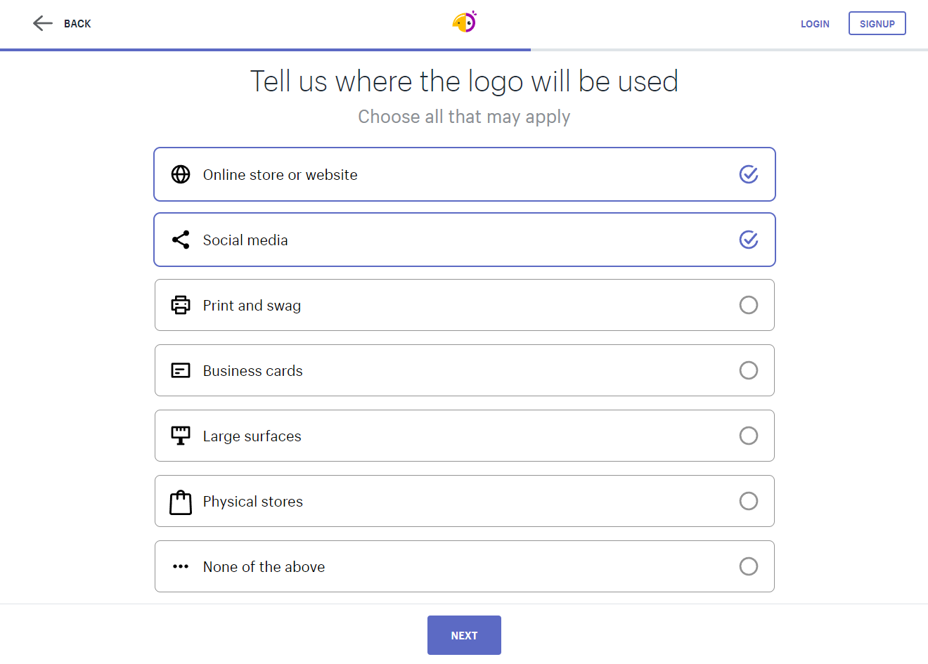 6. 로고가 어디에 사용될 것인지 선택합니다.
