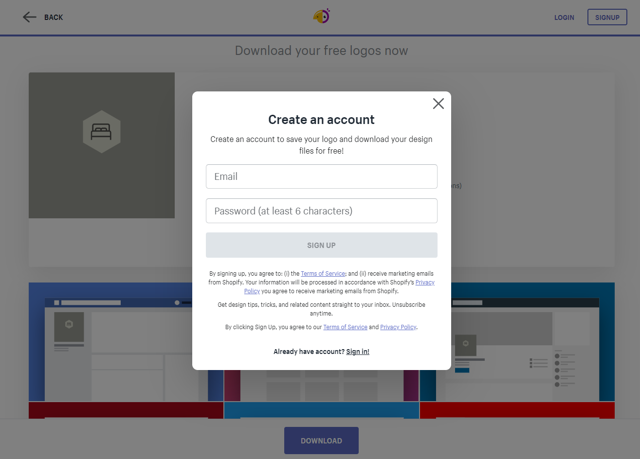 제작된 로고가 마음에 들면, 다운을 위해 회원가입을 하는 방식이라 마음에 들지 않으면 별도로 가입하지 않아도 되는 것이 마음에 듭니다.
