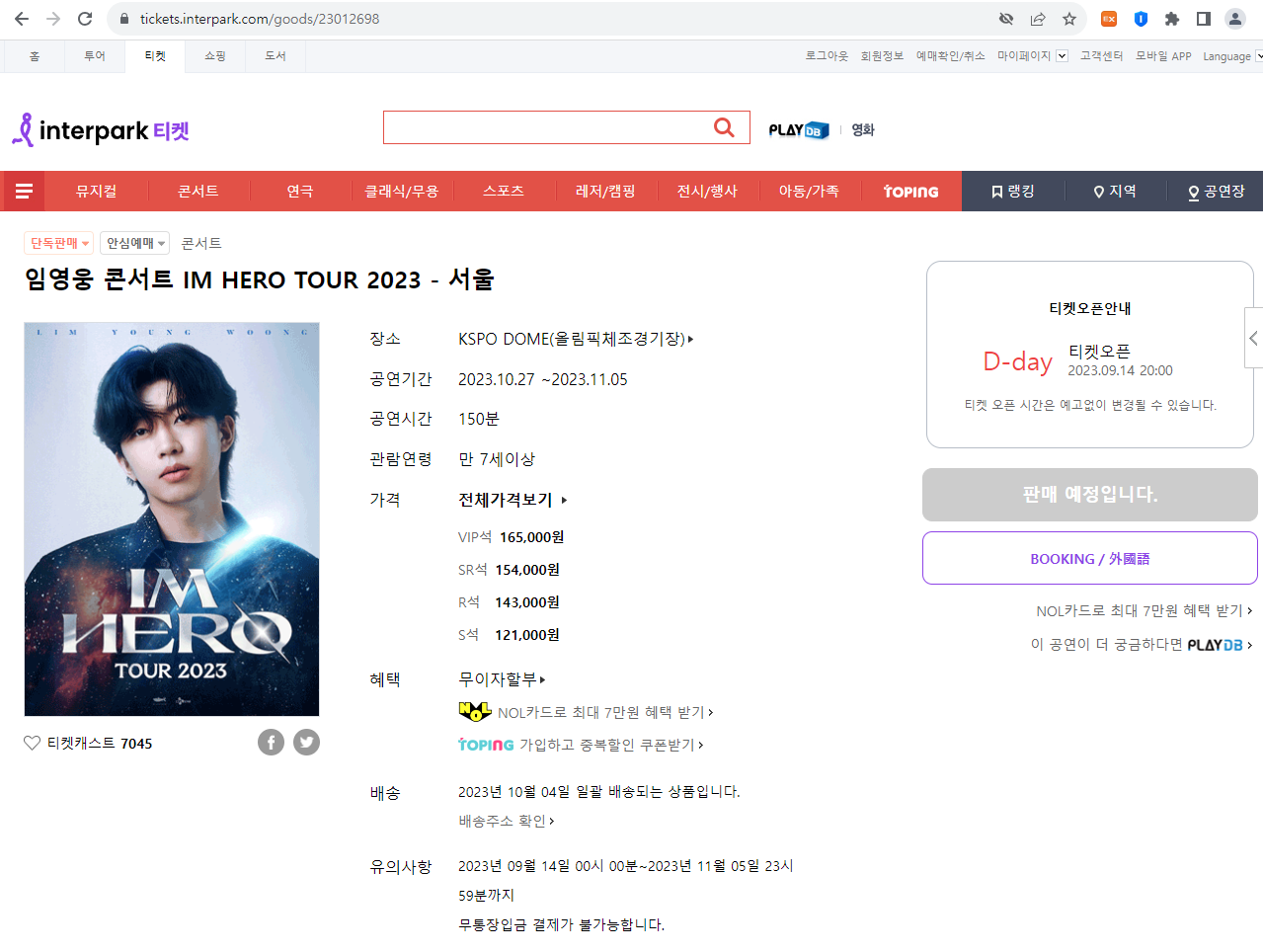 임영웅 전국투어 콘서트 2023 티켓팅 예매 성공 꿀팁 8가지 인터파크 티켓
