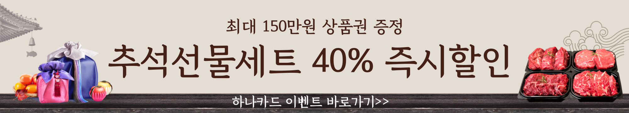 추석 선물세트 결세 시 최대 40% 즉시할인 및 최대 150만원 상품권 증정