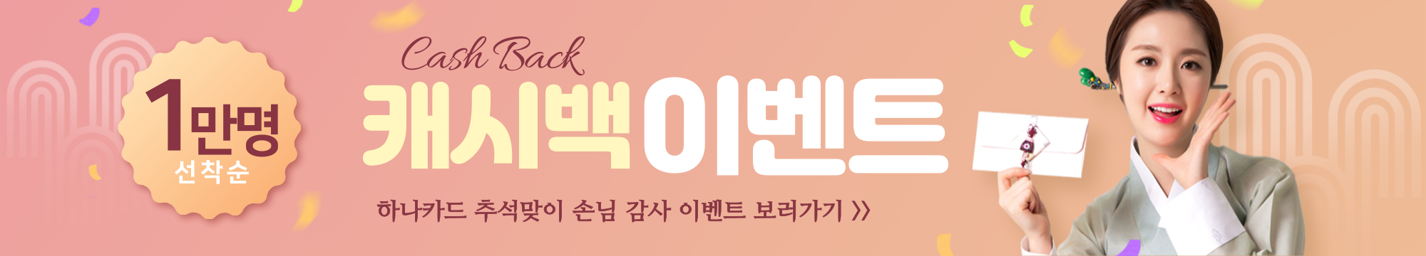 | 추석맞이 손님 감사 이벤트 (캐시백) 하나카드 - 선착순 1만명 / 신청방법 중요 (0) | 2023.09.05 |