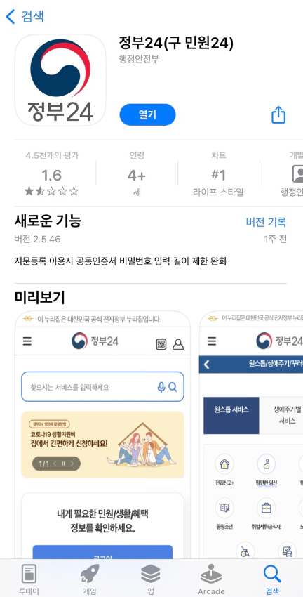 여기서 주의하실 점은 정부24 웹에서가 아닌 앱만 가능하다는 점.