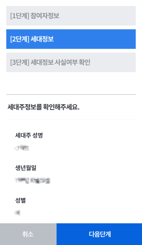 [3단계] 세대정보 사실여부 확인 > 다음단계