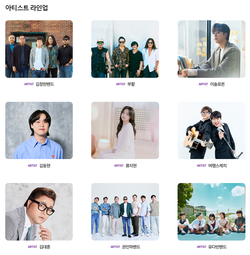 김창완 밴드 / 부활 / 이솔로몬 / 김동현 / 류지현 / 여행스케치 / 김대훈 / 권인하밴드 / 유다빈밴드