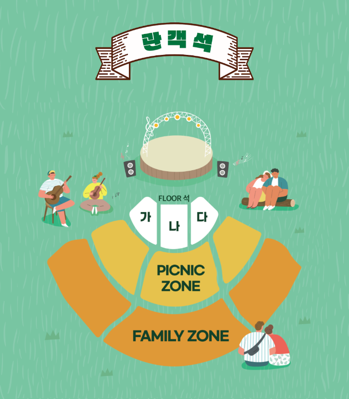 플로어석을 제외한 피크닉/패밀리존은 잔디밭이라 편한 관람을 위해 돗자리를 챙겨가세요